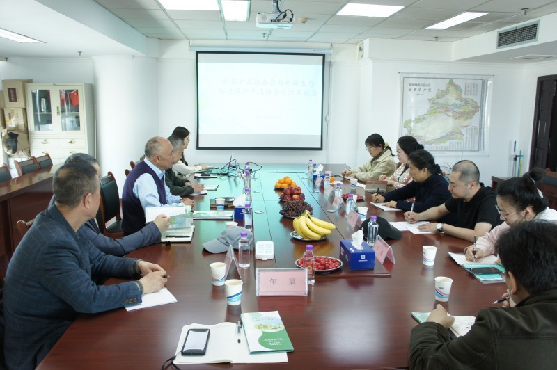 4月28日下午,新疆生態環境保護產業協會常務副會長黃韶華、副秘書長賀華等一行五人蒞臨新疆礦業聯合會座談交流。新疆礦業聯合會秘書長張志敏及相關工作人員出席會議。