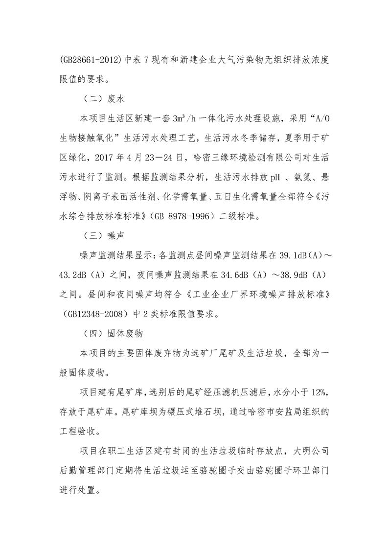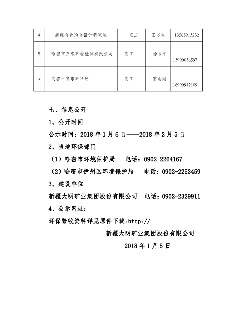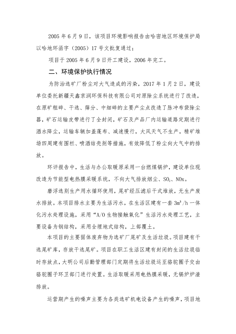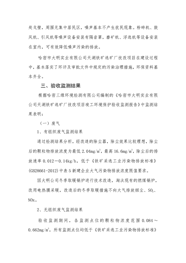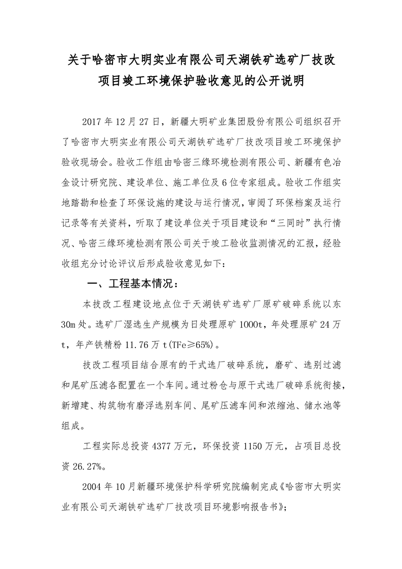 關于哈密市大明實業有限公司天湖鐵礦選礦廠技改項目竣工環境保護驗收意見的公開說明
