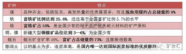 歐亞大陸腹心,幅員遼闊,地質構造復雜,成礦條件優越……諸多優越條件造就了新疆豐富的礦產資源。目前,全國已發現的162個礦種中,新疆就有122種,石油、天然氣、煤、金、銅、鉛、鋅、石棉、鹽類、膨潤土、石灰巖、蛭石等優勢礦種均是國內急缺或重要的礦產,新疆也成為了我國最重要的礦產資源儲備基地。
