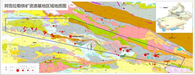 阿吾拉勒鐵礦基地位于新疆西山山脈西段、西天山地區中部的阿吾拉勒山一帶,由西向東一次分布尼新塔格-阿克沙依、查崗諾爾鐵礦、智博鐵礦、敦德鐵礦、備戰鐵礦等多個大礦,鐵礦資源量16.7億噸。