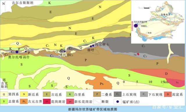 西昆侖馬爾坎蘇錳礦帶位于克孜勒蘇柯爾克孜自治州阿克陶縣,發現了奧爾托喀訥什大型錳礦床和博托彥、穆呼、馬爾坎土等一批錳礦點,愿景儲量可達億噸,有望成為絲綢之路經濟帶最重要的優質錳礦資源基地。