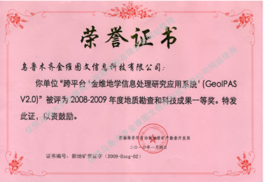 2008-2009年度新疆地礦局地質勘查與科技成果一等獎