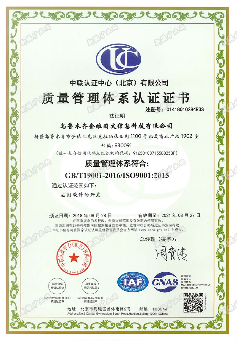 | 發(fā)證機(jī)構(gòu): | 中聯(lián)認(rèn)證中心(北京)有限公司 | 發(fā)證時(shí)間 : | 2018-08-28 |