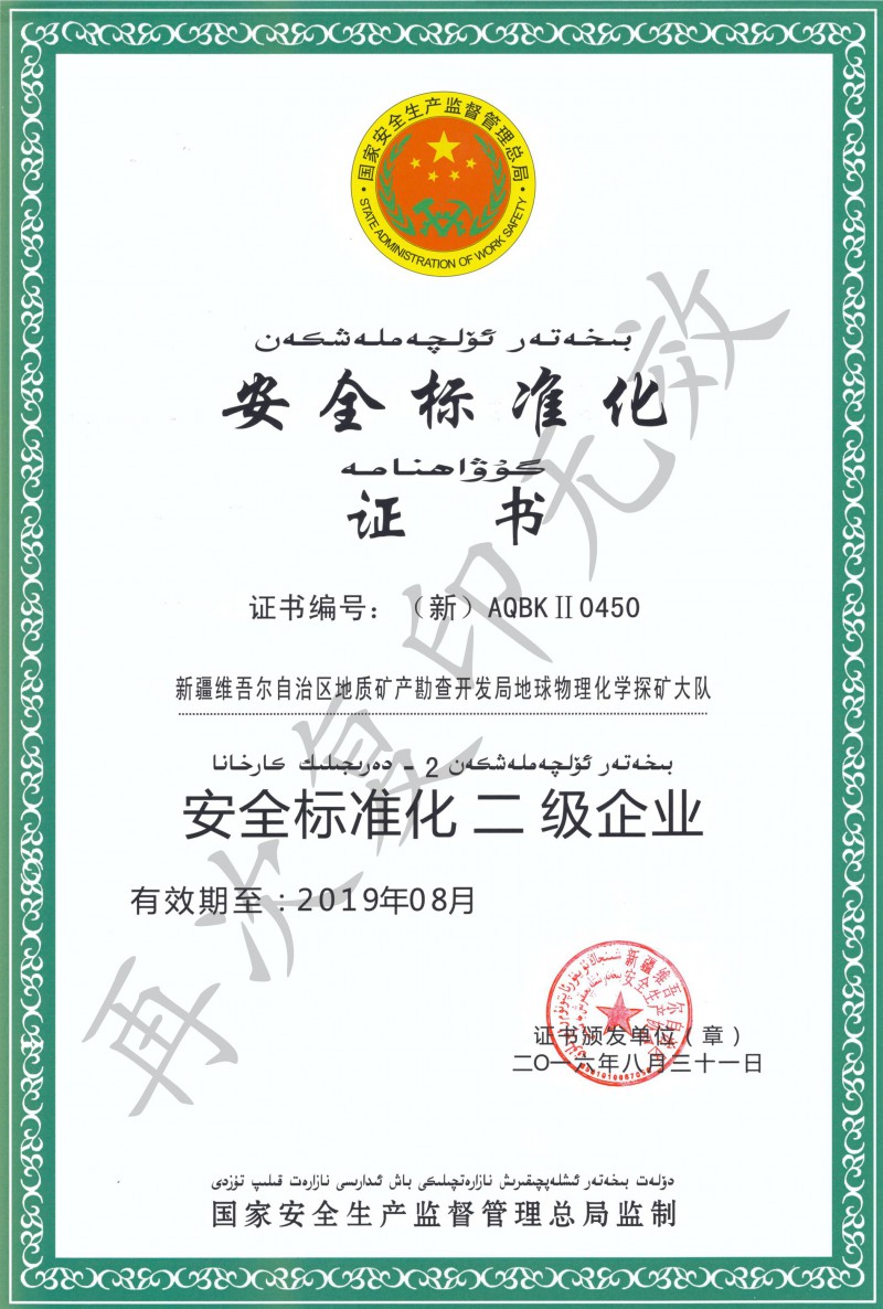 安全標準化證書