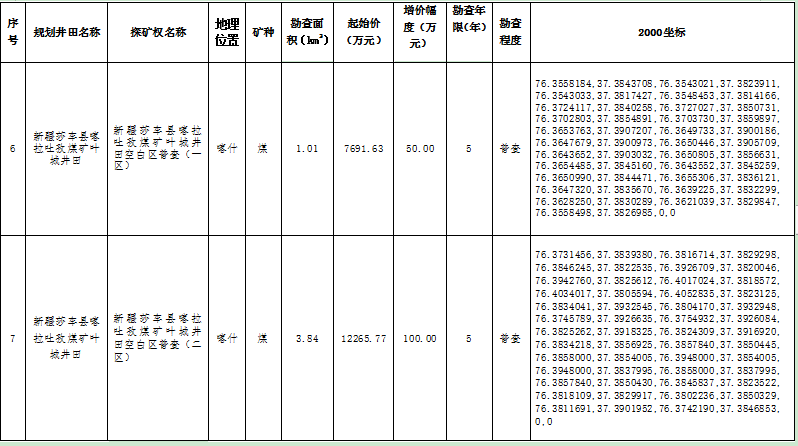 本次出讓標的均為煤炭探礦權,其范圍是煤炭規劃井田內已設煤炭礦業權與規劃井田邊界之間空白區的探礦權(詳見附件1)。